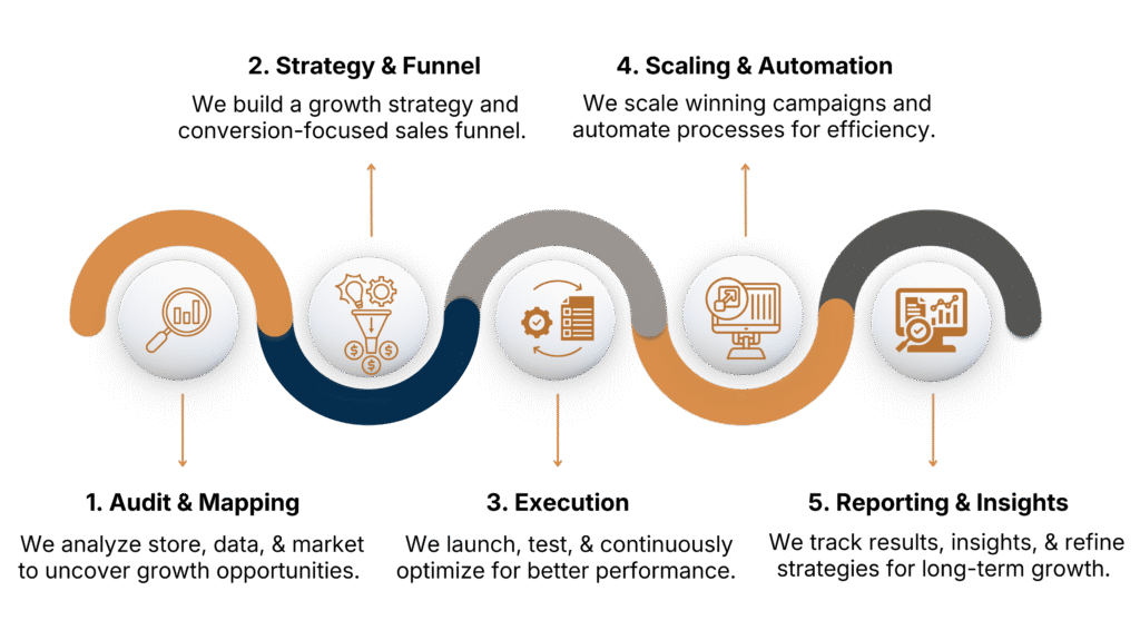 At Markentric, we manage, optimize, and scale e-commerce brands using a blend of AI insights, performance marketing, conversion optimization, and automation; so you can grow profitably and sustainably.
