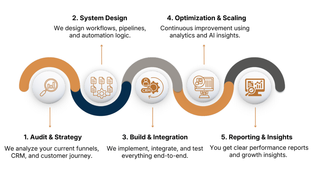 At Markentric, we design intelligent marketing automation systems that nurture leads, increase conversions, and drive revenue; while you focus on growing your business. We combine CRM strategy, automation workflows, and AI-driven insights to turn every interaction into a growth opportunity.